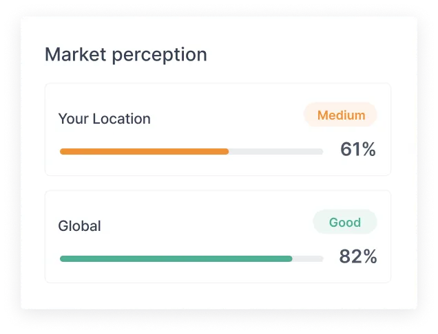 How AI describes your brand in the chosen region compared to its global perception. Identifies geographic blind spots.