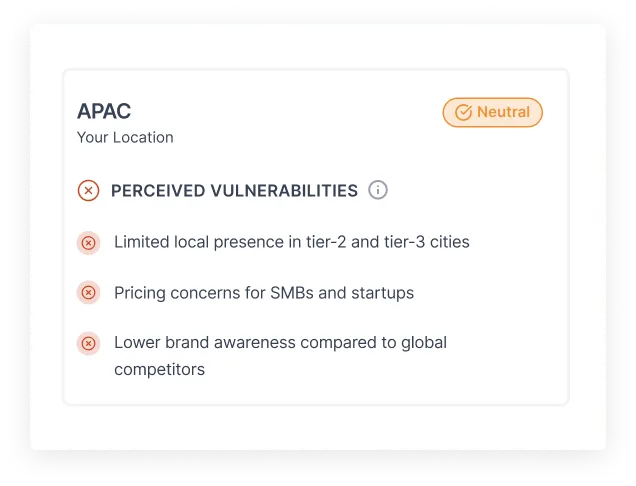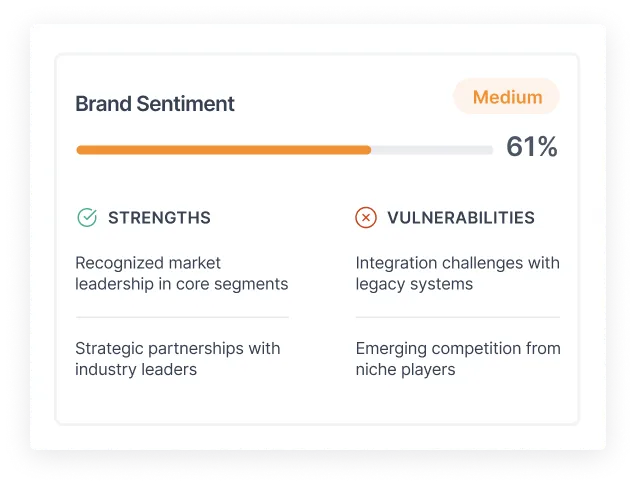 Gaps, weaknesses, or negative associations surfaced by AI. These are the brand perception risks most teams don’t know exist.
