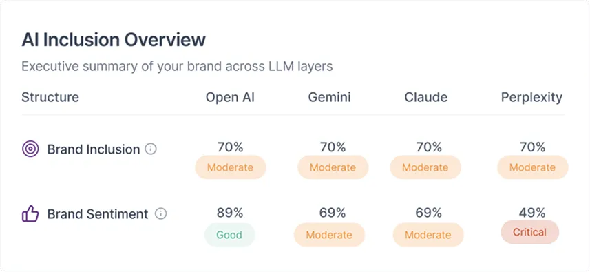 See exactly how AI models perceive, misrepresent, and omit your brand. In 20 minutes.